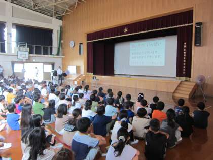 始業式では、体育館に全校生が集まり、校長先生のお話を聞きました。