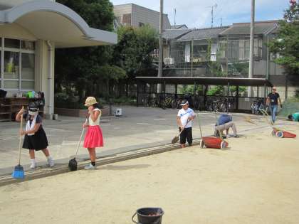 「あつまれ にんなの子」親子で校庭清掃クリーン作戦2