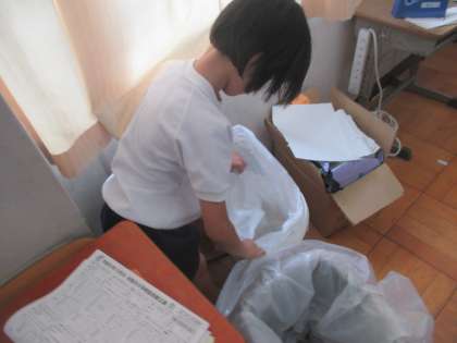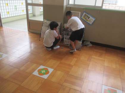 ぞうきんをきれいに並べたり、ゴミ箱の周りをきれいにしたりしている姿がありました。