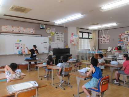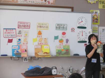 栄養教諭の早田先生と一緒に食の指導
