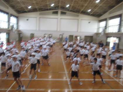 ゆめホールより広い体育館でソーラン節の練習を行いました。