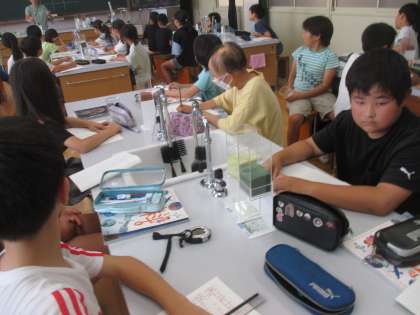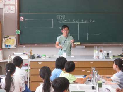 土のつぶの大きさと水のしみこみ方の関係を調べました。