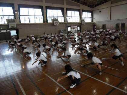 3・4年生で「仁和よいこと音頭」と「ソーラン節」の練習をしています。