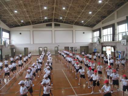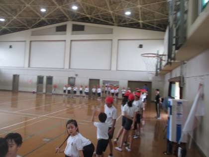 スポーツフェスティバルの練習は体育館で行いました。