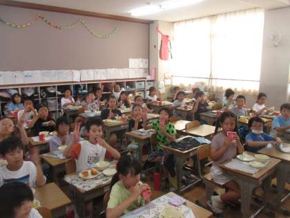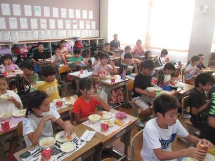 椅子をきれいにしたり、給食もおいしくいただいたりしました。