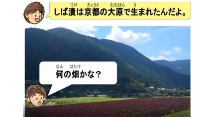 「しばづけ」は、京都産のなす、京都市左京区の大原地域でとれた赤じそ、塩を使って、昔ながらの方法で作られています。