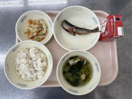 煮魚が苦手な児童もいますが、給食室で骨まで柔らかくおいしく炊かれたいわしを上手にほぐして味わっていました。