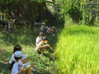 6月に植えた稲がすくすくと成長し、稲穂が実りました。所々、少し青さがあるものの秋の日差しに黄金色に輝いています。稲刈りが楽しみです。