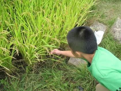 風が吹くと少し寒いくらいの日となりました。子どもたちは元気に外で遊んでいます。「ゆめの森に彼岸花があったはず。」という友達の声に「ゆめの森ツアーをしよう。」ということになり、みんなでゆめの森へ。田んぼの稲穂もキラキラ輝いていました。2年生は、もうすぐ稲刈りをします。どんぐりもちらほら見られます。秋が急ぎ足でやってきたようです。
