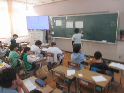 複雑な図形の面積をどのようにして求めるのかを話し合いました。