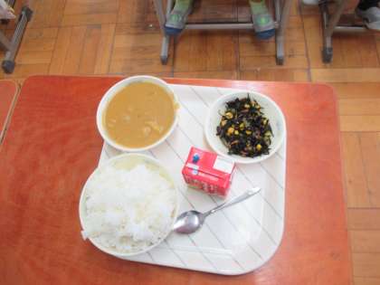 今日の給食は大人気のチキンカレー!!