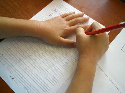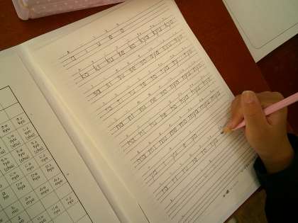 自分が書いたローマ字が友だちや先生に伝わると、とてもうれしそうでした。