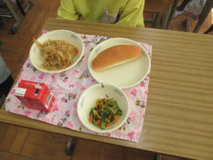 今日の給食はソース焼きそばでした。頑張った分だけとてもおいしく感じたそうです。