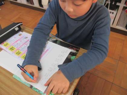 木曜日のテストに向けて、家でも頑張っているみたいです。
