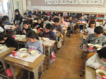 今日の給食のメニューはプリプリ中華いために春雨スープ!大人気でした。