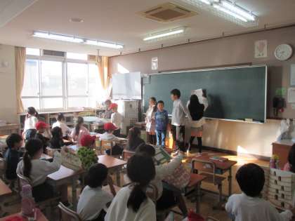 1年生に向けて、自分たちが考えたことのポスターを宣伝しに行きました。