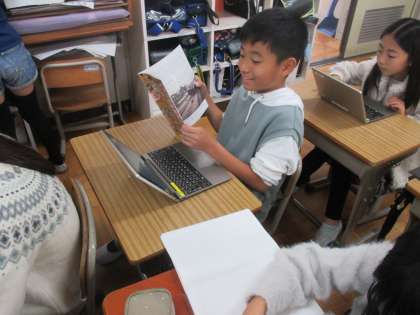 北垣知事は第一疏水を何に使おうとしたのかを、自分たちで調べています。ジュニア京都検定の冊子を使っているおともだちもいました。