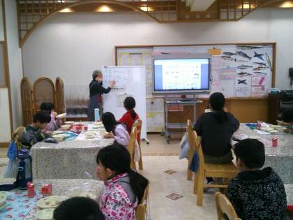 ランチルームで給食を食べました。