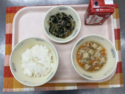 給食の米飯は、京都府内産のお米です。12月1日の米飯は、京都市右京区の京北町でとれた「京北米」でした。