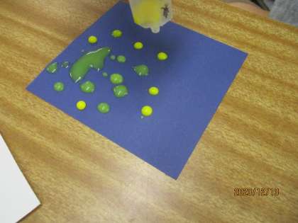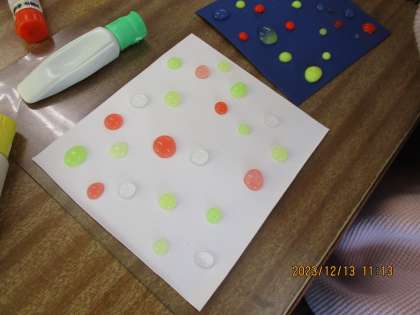 同じ色ですが、水や絵の具の量を調節して色の濃淡を楽しんでいる児童もいました。