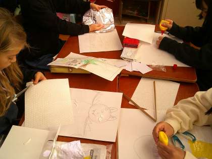 どんな素材を使うとおもしろいかを考えながら、「版」を作りました。