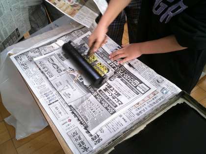 版をどこにどのように置くのかをいろいろ試しながら刷りました。