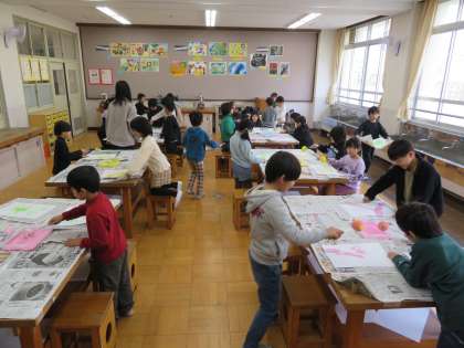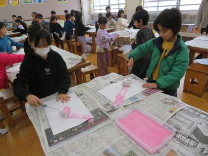 版画の背景を絵の具を使って作成しました。来週は、いよいよ版を刷っていきます。