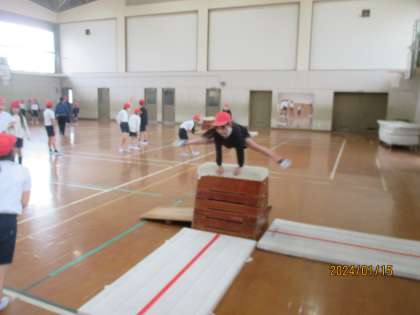 ねらい1では、自分がとべる高さでできる技に挑戦しています。
