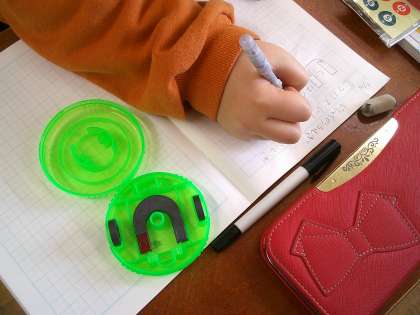 今日はじしゃくをいろいろなものに付けたり、じしゃくとじしゃくを近付けたりしながら、発見したことを交流しました。
