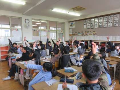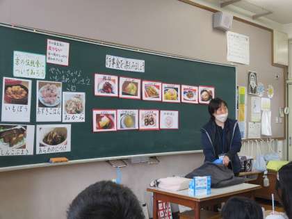 15日(月)の4時間目には早田先生に来て頂き、「行事食」をテーマにお話しして頂きました。