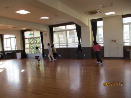 なかよし学級では、毎朝、ラジオ体操第一・第二そして、その月のダンスを踊っています。その後、ゆめホールや体育館に移動してランニングをして体を動かしています。