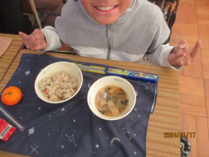 今日の給食は、防災・ボランティアの日にちなんだ給食でした。