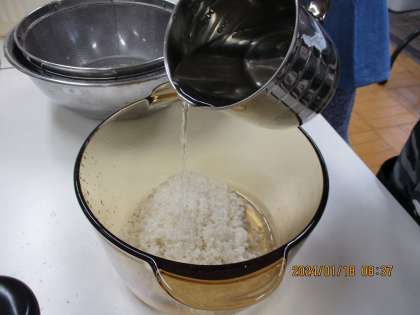 まずは、お米の浸水と煮干しの作業!