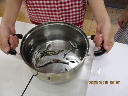 お米を洗ったり、煮干しのはらわたを取ったり、一つ一つの作業を楽しんで取り組んでいました。