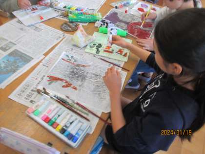 刷った作品に色をいれると、ちがった作品に仕上がってきました。