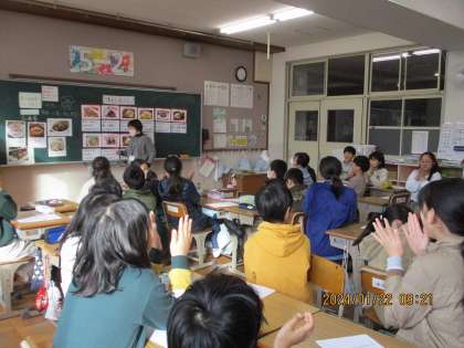 班に2題ずつ、料理に込められた思いが書かれたカードを配ってもらい、それを基になんの料理に当てはまるのか、予想しました。