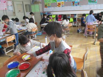 本日、子どもたちが楽しみにしていた「うつした かたちから」の学習をしました。