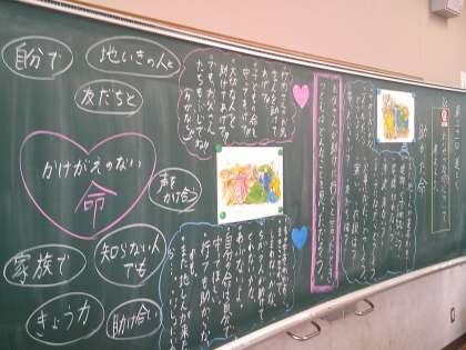道徳科で、「助かった命」という教材を使って、「命」について考えました。