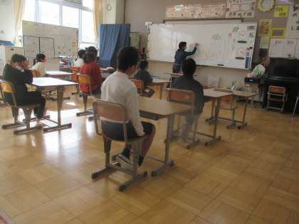 めあてに向かう気持ちについて考えました。一人一人が,がんばろうとしていることがよくわかっていて,”わたし”や”ともだち”に向かって励ましの言葉をかける子どもたち。あきらめずに続けてがんばった時の気持ちを訪ねたると,「できた。」「やったー。」「がんばったね。」など自分をほめる言葉が溢れました。