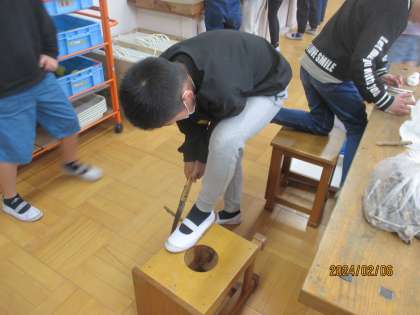 のこぎりやホットボンドを使って学習を進めています。