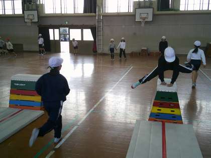 今日は開脚跳びや抱え込み跳びに加え、台上前転にも挑戦しました。
