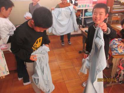 昨日から始まった給食週間。今日は正しいエプロンのたたみ方についての動画を見た後、今使っているエプロンをたたみ直しました。
