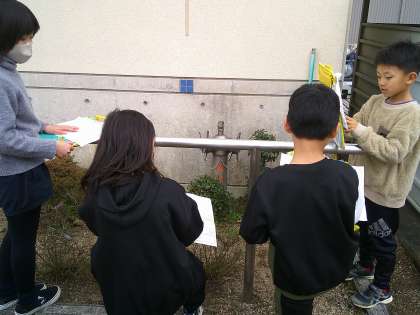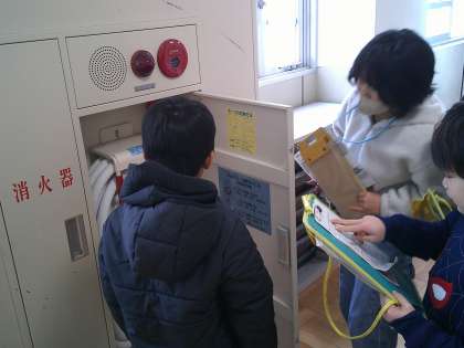 小学校内の、どこに消火器や防火水槽・火災警報器などがあるかをグループで調べました。
