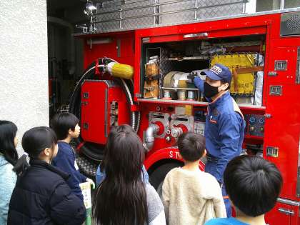 防災についてのお話をしてくださったり、消防車や救急車の中を見せていただいたりしました。