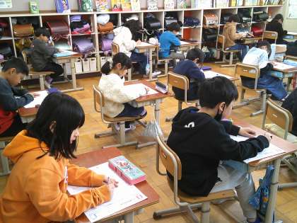 今日は全校一斉に「漢字まとめテスト」を行いました。
