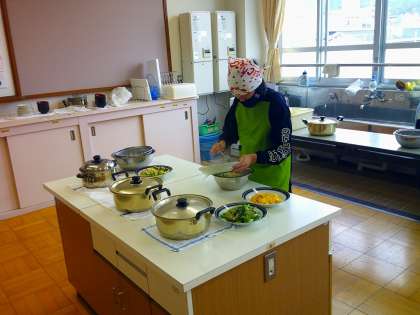 炒める人、ゆでる人、盛り付けする人など分担していました。