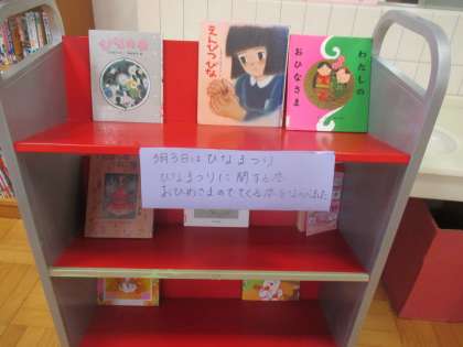 ゆめいろ図書館には、季節のコーナーがあります。田中先生がその時期や行事にちなんだ本を紹介してくれています。ぜひ,読んでみてください。また,飼育委員会さんが仁和のアイドルきなこの本を作ってくれました。2冊あります。バーコードがついていますので,読書ノートで借りて読んでください。