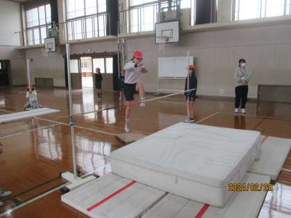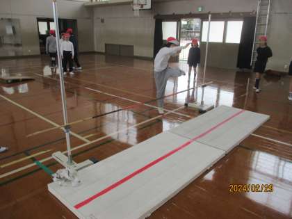 今日からねらい2の学習です。子ども達から助走や踏切、跳んでいる時の姿勢、着地が大切だという話し合いから、実際に跳んでいきました。