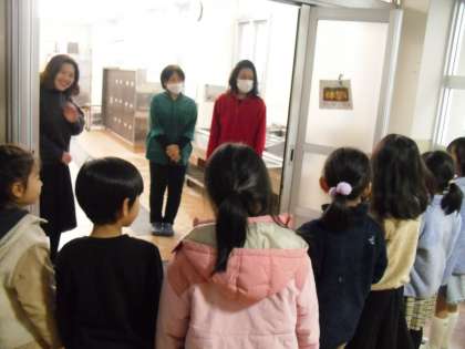 給食委員会等の児童が代表して給食調理員に気持ちを伝えにいきました。「僕はキャベツのすまし汁が好きです!」「私はペンネの豆乳グラタンが好きです!」「これからもよろしくお願いいたします!」と、たくさんの気持ちを伝えることができました。