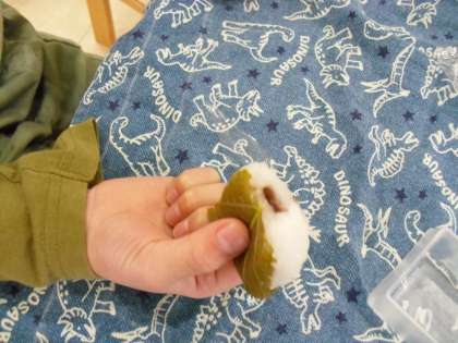 「葉っぱも食べられるの?桜のお花の葉っぱなんだね!」「葉っぱだけ食べるとちょっと苦手だけど、塩の味とあんこのあまさで、おいしい味になるね!」「桜もちの葉っぱを食べなかったら、桜もちではなく、ただのもちになってもったいないね。」と、それぞれに発見しながら、おいしく味わえていました。